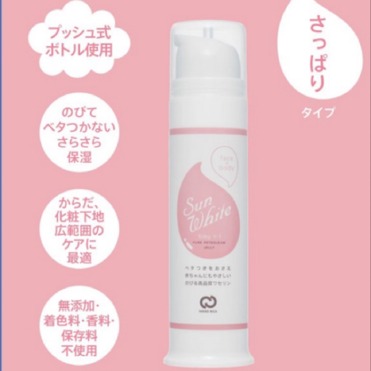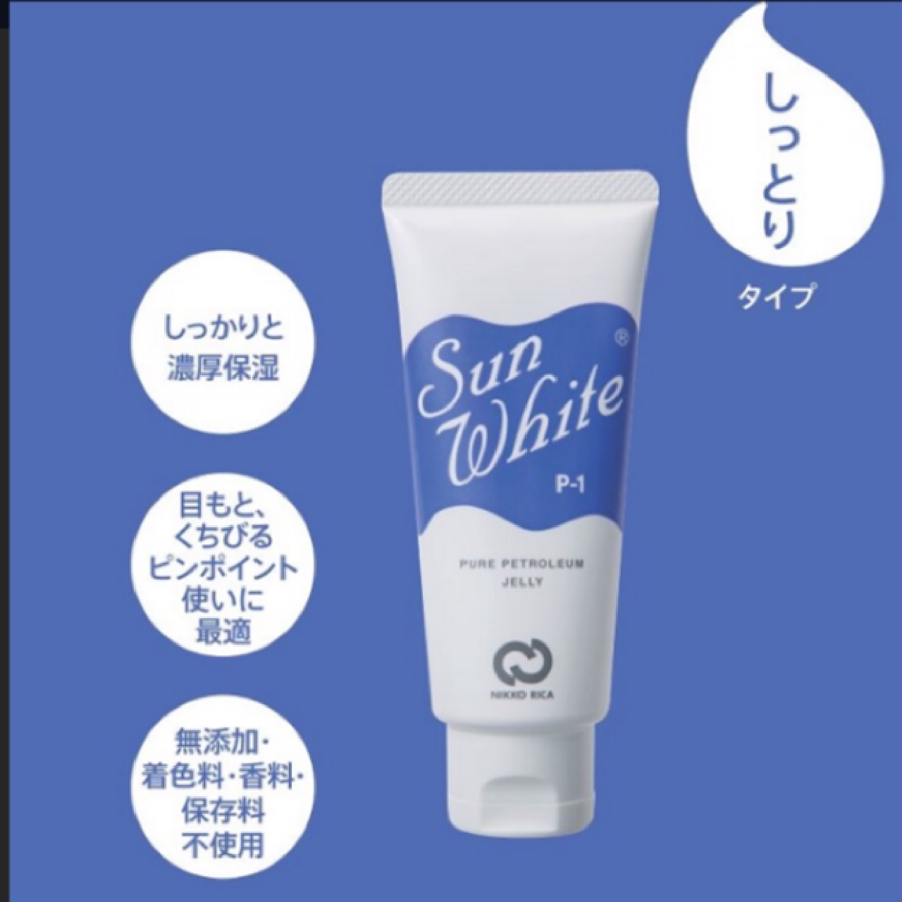 しっとりタイプのサンホワイトP1(チューブタイプ)、さっぱりタイプのサンホワイトシルキーY1(プッシュタイプ)の2タイプあります。サンホワイトシルキーY1は、化粧下地としてもお使いいただけます。詳しくは、スタッフまでお声がけください。