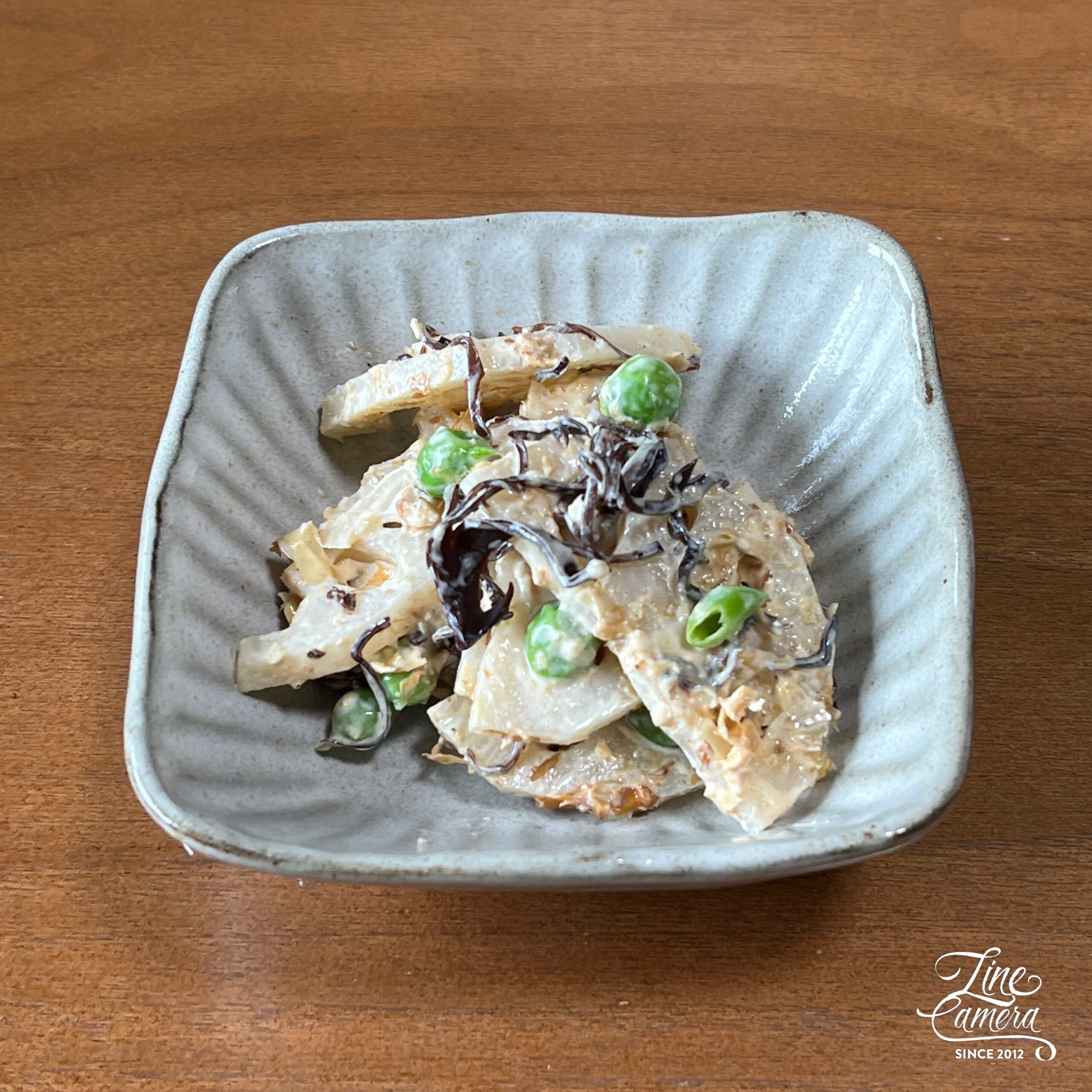 今日はれんこんときくらげを使った、歯ごたえたっぷりの和え物です。かつおぶしをいれることで、調味料がしっかりと具材にからみ、少ない量の調味料でも美味しくいただけます。