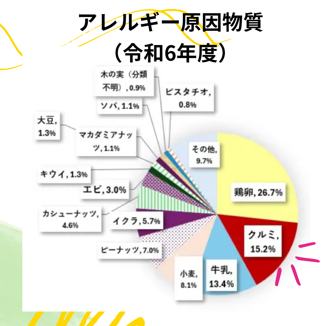 令和6年度の調査では、従来の主要アレルゲンであった原因物質の牛乳を大きく上回り、鶏卵に続いてくるみが2位となりました!